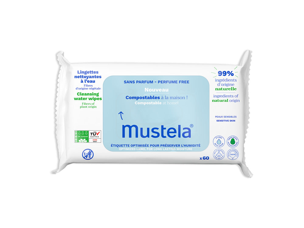 Șervețelele curățătoare pentru bebeluși pe bază de apă curăță eficient și delicat fața, mâinile sau zona scutecului, încă de la naștere*.